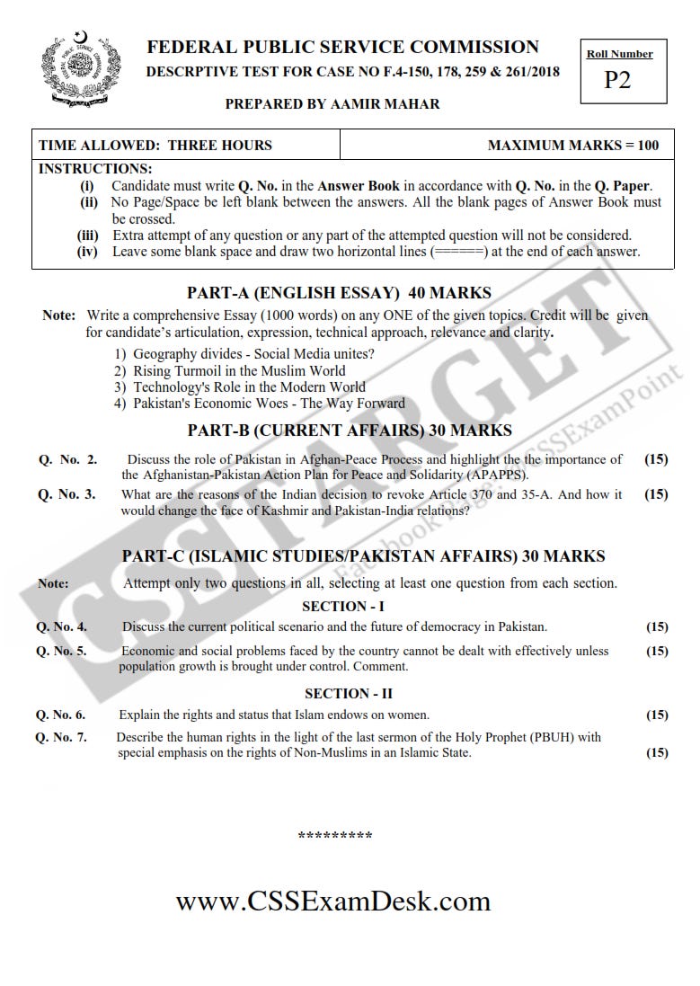 FPSC Descriptive Test Notes I compiled these notes back in December 2019 for Descriptive Test of case Nos. F.4-150, 178, 259 & 261/2018, conducted by Federal Public Service Commission (FPSC).CSS Exam DeskJun 23, 202073ShareFPSC Descriptive Test Notes by Aamir Mahar, click here to download. Thank you.Download FPSC Descriptive Test – Sample PaperPart - I : FPSC Descriptive Test Notes by Aamir MaharPart - II : FPSC Descriptive Test Notes by Aamir MaharShare